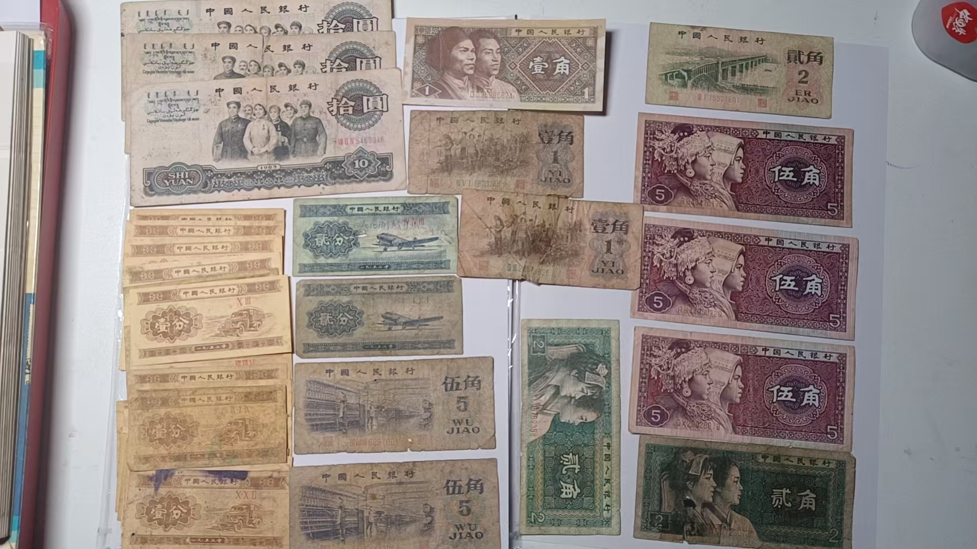 本次挂售的是一组极具历史价值的珍稀旧纸币藏品,包含不同时期、不同版别的纸币。左侧为早期大额纸币,票面人物图案清晰,带着浓厚的时代印记;中间是多版别零散纸币,涵盖多种面值与版式,见证了货币体系的演变;右侧为特定面值的流通纸币,票面图案完整,留存着岁月痕迹。
